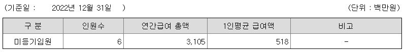 미등기임원의 평균연봉은 5억 1800만원이고 직원수는 6명입니다.