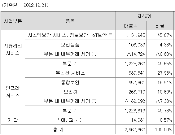 당사 및 종속회사는 시스템보안 서비스, 정보보안, IoT보안, 보안관련 상품판매,