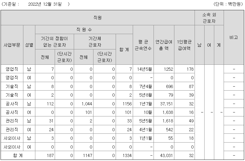 전체 평균연봉은 3200만원이고 직원수는 1334명입니다.