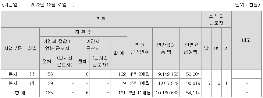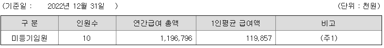 미등기임원의 평균연봉은 1억 1985만원이고 직원수는 10명입니다.