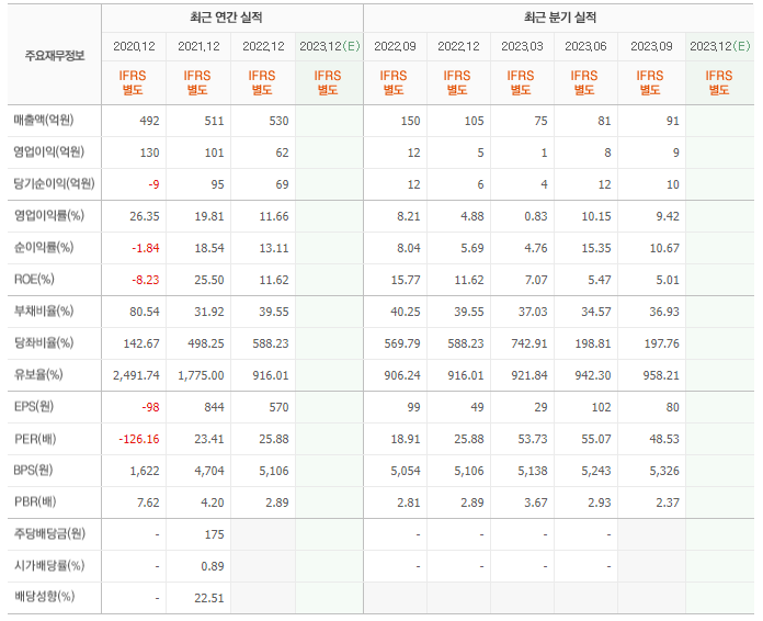 2022년 매출은 530억, 영업이익은 62억, 당기순이익은 69억입니다. 그리고 영업이익률은 11.66%입니다.