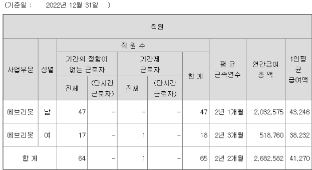 에브리봇 연봉 2022년 기준 공시자료