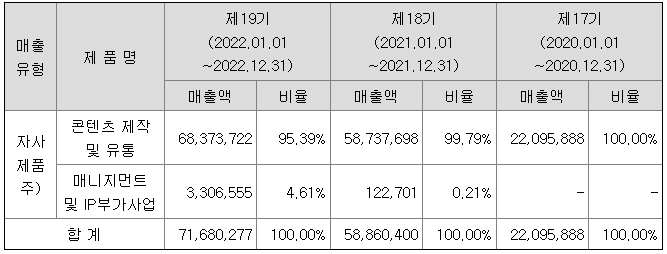 당사는 2004년 1월 설립한 콘텐츠 제작 전문기업입니다. 콘텐츠를 기획 및 제작하여 방송국, OTT, 해외시장 등에 공급하는 콘텐츠 제작 및 유통을 주사업으로 하고 있으며, 계열회사를 통해 IP(지적재산권)를 활용한 부가사업(웹툰, OST, 게임 등) 및 배우 매니지먼트 사업을 영위하고 있습니다.