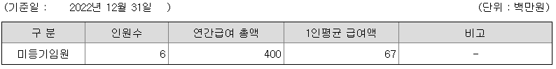미등기임원의 평균연봉은 6700만원이고 직원수는 6명입니다.