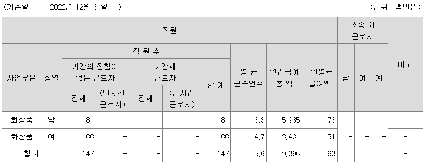당사 화장품 주요 브랜드는 민감피부 전문 스킨케어 '아토팜', 피부장벽 전문 더모코스메틱 '리얼베리어', 생활보습 바디 전문 '더마비', 자연주의 컨셉의 '티엘스', 메디컬 스킨케어 브랜드 '제로이드' 가 있으며, 2022년 기준 매출액 84,212백만원, 당기순이익 17,948백만원의 실적을 달성하였습니다.
