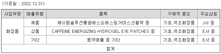 가. 주요 제품, 서비스 등