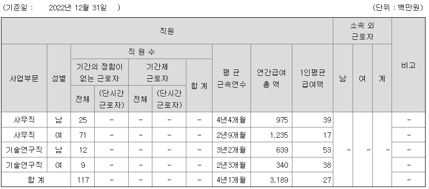 전체 평균연봉은 2700만원이고 직원수는 117명입니다.