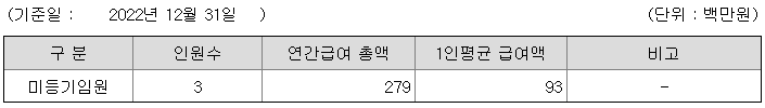 미등기임원의 평균연봉은 9300만원이고 직원수는 3명입니다.