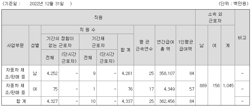 | 사업부문 | 성별 | 직원수 | 평균근속연수 | 평균연봉(백만) |