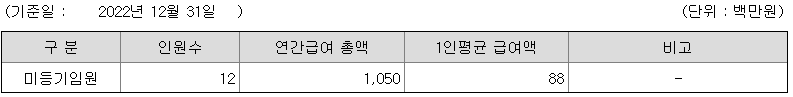 미등기임원의 평균연봉은 8800만원이고 직원수는 12명입니다.
