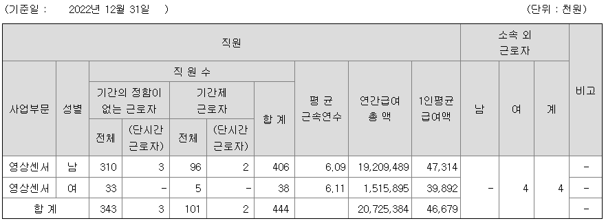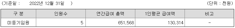 미등기임원의 평균연봉은 1억 3031만원이고 직원수는 5명입니다.
