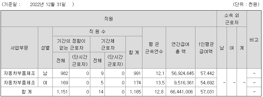 미등기임원의 평균연봉은 1억 1456만원이고 직원수는 12명입니다.