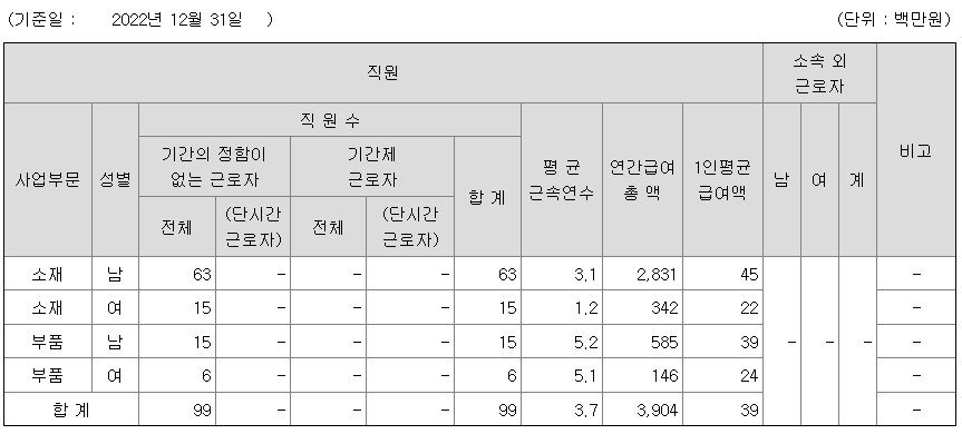 미등기임원의 평균연봉은 1억 100만원이고 직원수는 2명입니다.
