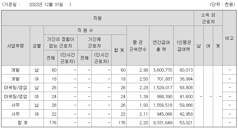 전체 평균연봉은 5302만원이고 직원수는 176명입니다.