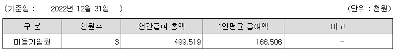 미등기임원의 평균연봉은 1억 6650만원이고 직원수는 3명입니다.