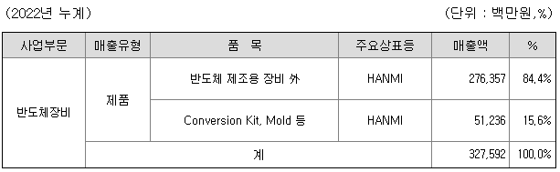1) 주요 제품 등의 현황