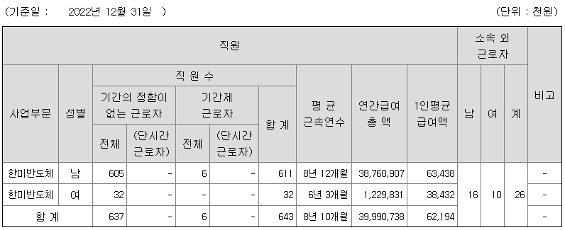 | 한미반도체 | 남 | 611 | 8년 12개월 | 63 |
