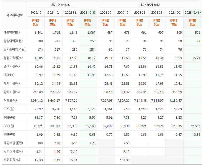 2022년 매출은 1843억, 영업이익은 330억, 당기순이익은 250억입니다. 그리고 영업이익률은 17.89%입니다.