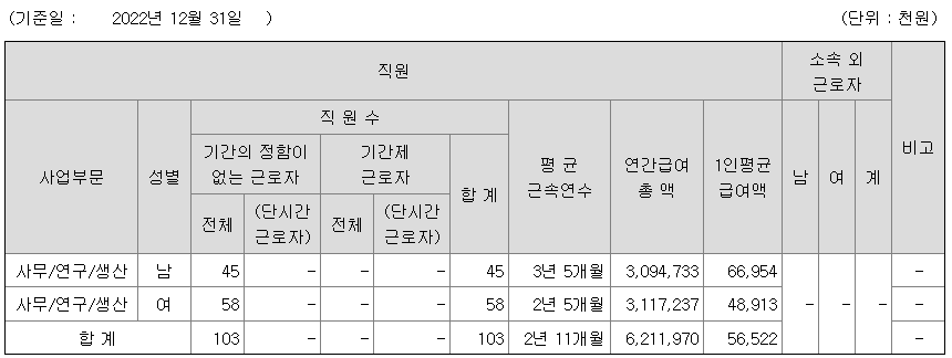 미등기임원의 평균연봉은 1억 2829만원이고 직원수는 6명입니다.