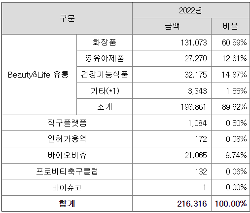구체적으로, 당사는 (ⅰ) JD.COM, T-mall 등 Global E-Commerce Platform과의 견고한 Partnership, (ⅱ) Global Brand 소싱 영업망과 (ⅲ ) Big Data 기반의 Platform 社 - Brand 社에 대한 양방향 Solution제공 역량을 당사의 강점으로 활용하여, Global E-Commerce Platform 및 유통 전문 기업 등에게 화장품(스킨케어, 색조, 향수 등), 영유아제품, 건강기능식품을 공급하고 있습니다.