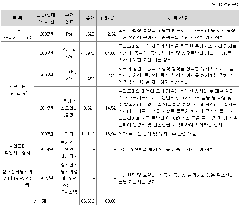 가. 주요 제품 등의 현황