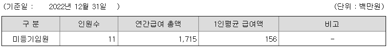 미등기임원의 평균연봉은 1억 5600만원이고 직원수는 11명입니다.