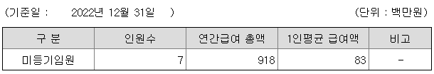 미등기임원의 평균연봉은 8300만원이고 직원수는 7명입니다.