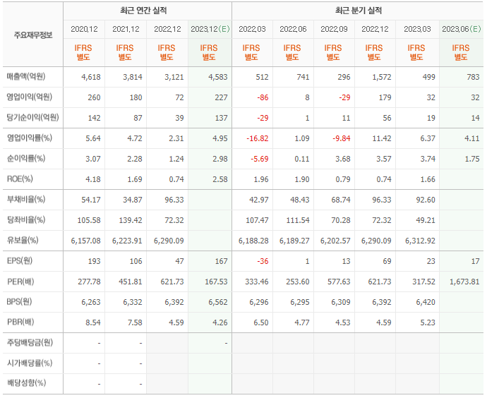 2022년 실적은 3121억, 영업이익은 72억입니다. 그리고 영업이익률은 2.31%입니다.