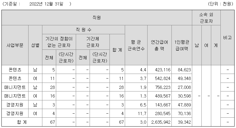 | 팬엔터테인먼트 연봉 2022년 기준 공시자료 (0) | 2024.01.31 |