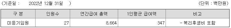 미등기임원의 평균연봉은 3억 4700만원이고 직원수는 27명입니다.