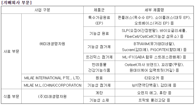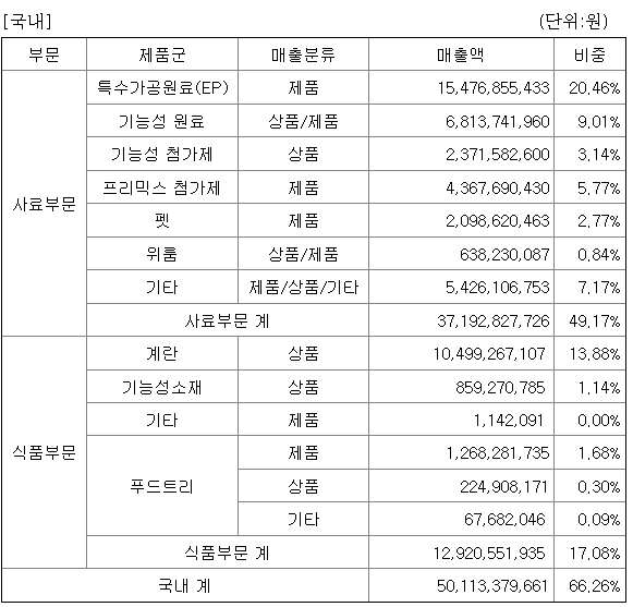 특수가공원료(EP), 기능성 원료, 기능성 첨가제, 프리믹스 첨가제, 반려동물 건강기능식품, 반려동물 프리미엄 용품 사업