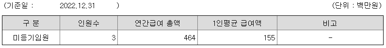 미등기임원의 평균연봉은 1억 5500만원이고 직원수는 3명입니다.