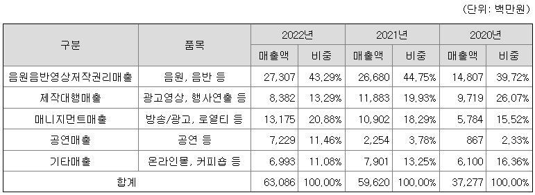 가. 주요 제품 등의 현황