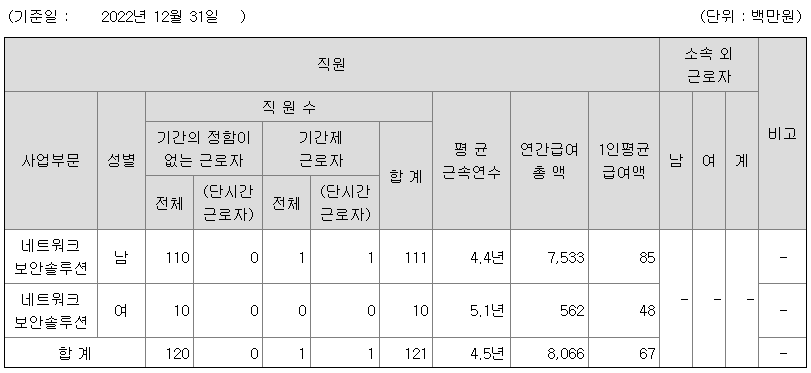 미등기임원의 평균연봉은 1억 1900만원이고 직원수는 3명입니다.