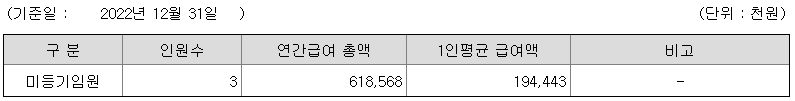 미등기임원의 평균연봉은 1억 9444만원이고 직원수는 3명입니다.