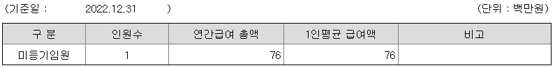 미등기임원의 평균연봉은 7600만원이고 직원수는 1명입니다.