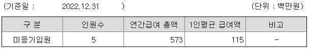 미등기임원의 평균연봉은 1억 1500만원이고 직원수는 5명입니다.