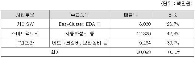 당사는 제어SW / 스마트팩토리 / IT 인프라 사업을 영위하고 있으며, 각 부문별 세부 사업 내용은 아래와 같습니다.