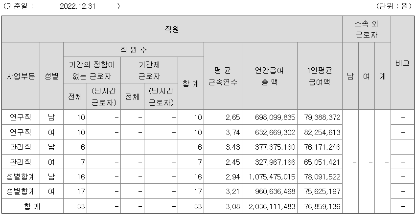 전체 평균연봉은 7685만원이고 직원수는 33명입니다.