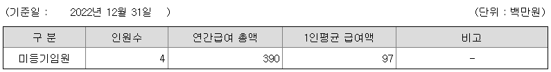 미등기임원의 평균연봉은 9700만원이고 직원수는 4명입니다.
