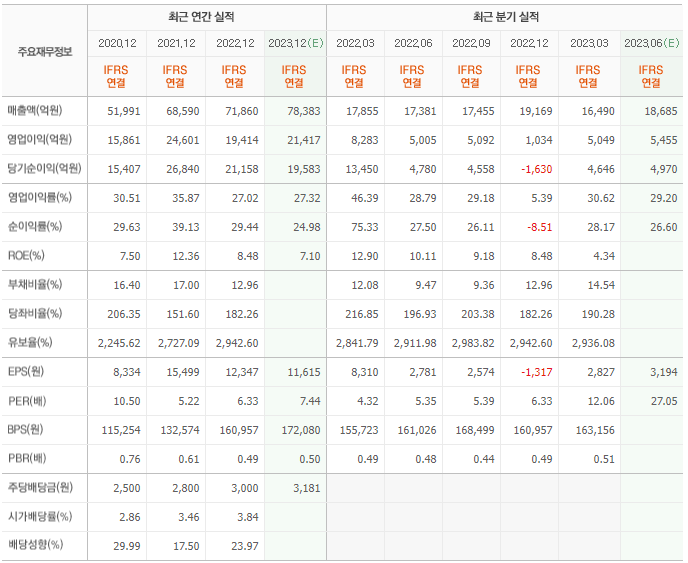 2022년 실적은 7조 1860억, 영업이익은 1조 9414억입니다. 그리고 영업이익률은 27.02%입니다.