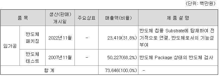 당사는 당기에 (주)에이티세미콘으로부터 패키징 사업을 양수하여, 반도체 후공정 패키징 및 테스트를 일괄 제공할 수 있는 Turn-Key Solution 체제를 갖추어 경쟁회사 대비 비교우위를 창출할 수 있는 경쟁력의 한 축으로 역할을 할 것으로 기대하고 있습니다.