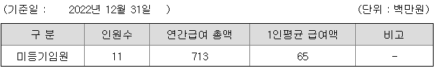 미등기임원의 평균연봉은 6500만원이고 직원수는 11명입니다.