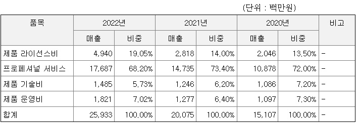 가. 주요 제품, 서비스의 매출 비중