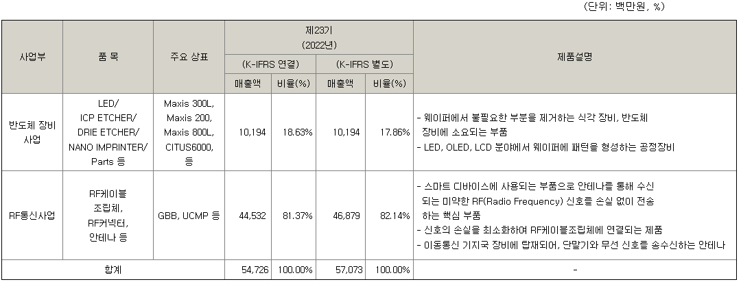 주식회사 기가레인과 그 종속회사(이하'연결회사')는 5G 이동통신 장비, 국방/항공 및 모바일 기기 분야 등에 관련된 RF통신 사업, Micro/Nano LED, 디스플레이 용 광원 제조 분야에 사용되는 나노 임프린터, LED 및 반도체 공정용 ICP/DRIE 식각장비 등의 반도체 장비 사업을 주력 사업으로 영위하고 있습니다.