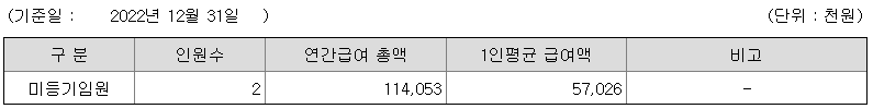 미등기임원의 평균연봉은 5702만원이고 직원수는 2명입니다.