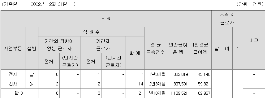 래몽래인 연봉 2022년 기준 공시자료