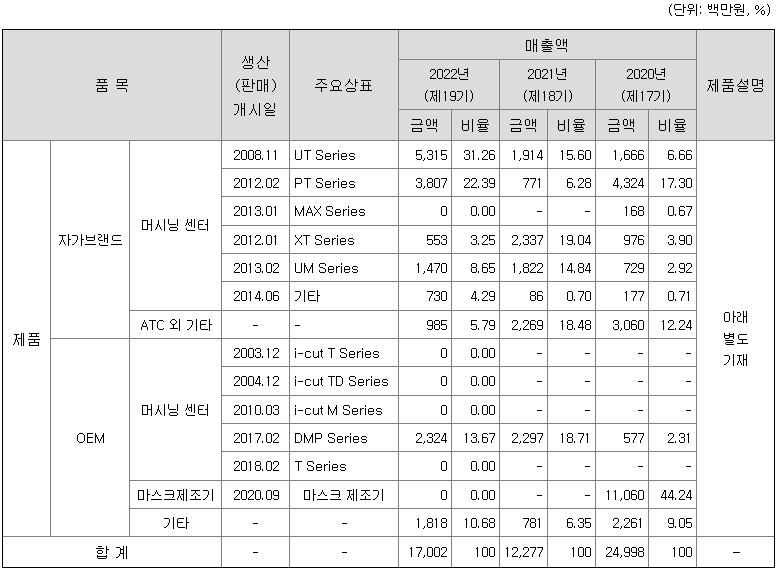 당사는 위 여섯 분류 중 머시닝센터 분류에 속하며 머시닝센터 중에서도 소형급인 소형머시닝센터를 개발, 생산, 판매하는 회사입니다.