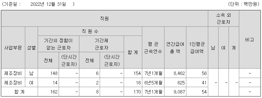미등기임원의 평균연봉은 1억 3300만원이고 직원수는 2명입니다.
