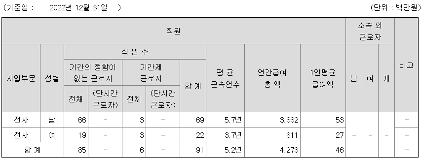 | 에스퓨얼셀 연봉 2022년 기준 공시자료 (0) | 2024.02.09 |